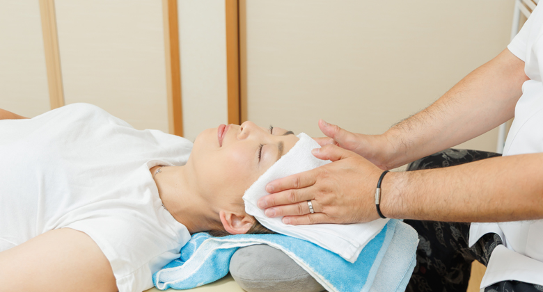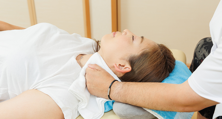 特にストレートネックや首のカーブの崩れは、肩の張りや頭の重だるさの原因となるため、丁寧にアプローチ。調整まくらを使用し、寝た状態で首の正しいカーブをサポートする施術もしていただきます。